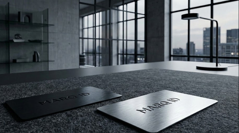 MARQ ID verbindet 1,0 mm massiven Edelstahl mit smarter NFC-Technologie. Teilen Sie Ihre digitalen Kontaktdaten mit nur einer Berührung – kompromisslos hochwertig, nachhaltig und unverwechselbar.